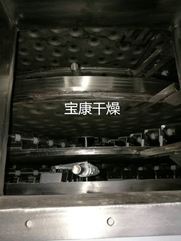 | ·常压型:由于设备内气流速度低,而且设备内湿度分布上高下低,粉尘很难浮到设备顶部,所以顶部排湿口排出的尾气中几乎不含有粉尘。 ·密闭型:配备溶剂回收装置,可方便地回收载湿气体中的有机溶剂。溶剂回收装置简单,回收率高,对于易燃、易爆、有毒和易氧化的物料,可用氮气作为载湿气体进行闭路循环,使之安全操作。特别适用于易燃、易爆、有毒物料的干燥。 ·真空型:在真空状态下操作的盘式干燥机,特别适用于热敏性物料的干燥。 |